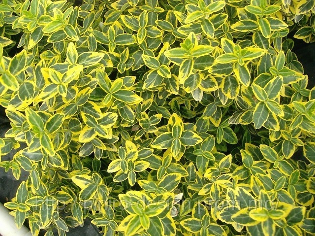 Саженцы Бересклета Форчуна Эмеральд Голд (Euonymus fortunei) – декоративный вечнозеленый кустарник, относится к группе почвопокровных. Его высота 50 сантиметров. Ежегодный прирост 10 сантиметров. Уникальность сорта в его пестрых зеленых яйцевидных листьях с желтой каймой, которая в осенне-зимний период приобретает розоватый окрас. Цветет кустарник в июне-июле белыми цветками. Растение предпочитает открытое солнечное место, не привередливо к тени. Сорт Форчуна Эмеральд Голд неприхотлив к почвам, но лучше себя чувствует на богатом гумусом увлажненном участке. Хорошо растет в условиях города. На зиму лучше укрывать.