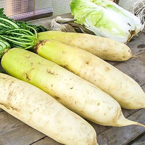 Семена дайкона "Русский размер F1" — это самый ранний сорт, который дает большой урожай крупных корнеплодов. Высевают их в июле. Уход за сортом семян дайкона "Русский размер F1" заключается в регулярном поливе, прополке и рыхлении почвы. Собирают корнеплоды через 45 дней после появления всходов. Урожай отличается высокими товарными качествами. Длина корнеплодов достигает до 60 см, диаметр до 12 см. Они имеют цилиндрическую форму, к кончику слегка зауженные. Кожица тонкая, белого цвета, гладкая. Мякоть белоснежная, сочная, великолепного вкуса. Корнеплоды не теряют сочность при длительном хранении.
