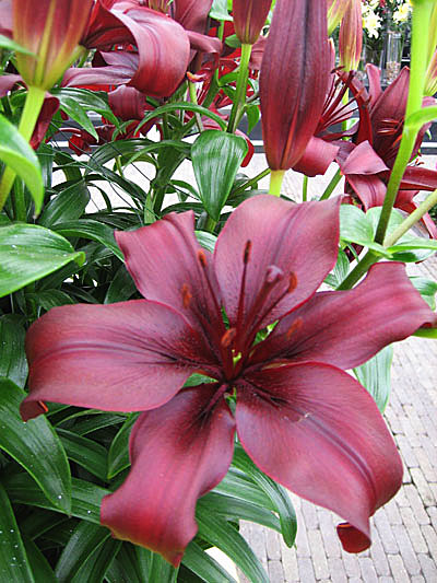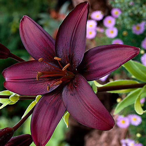 Лилии темно-фиолетового, винного цвета. Лепестки немного изогнуты, перламутровые. Пик цветения приходится на середину лета. Азиатский сорт неприхотлив в выращивании, не боится низких температур, не болеет. Хорошо себя чувствует на солнце и в полутени. Предпочитает нейтральные почвы.