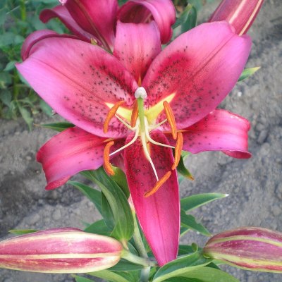 Саженцы и рассада Лилии восточной Арабиан Ред (Lilium oriental Arabian Red) принесут на клумбы яркость и сочность. Темно-красные крупные цветы с белым горлышком и крапчатыми лепестками, диаметром до 20 см, обладают сильным ароматом и привлекательной для насекомых окраской. Высота растения до 110 см, длина листьев до 25 см. Период цветения начинается июле, привлекательный декоративный вид и зелень сохраняется до глубокой осени, на зиму хорошо укрываются. При посадке требуют теплого светлого или полутеневого места с хорошо дренированной почвой. Пригодны для выращивания в помещениях, в цветочных горшках, в открытом грунте и теплицах.