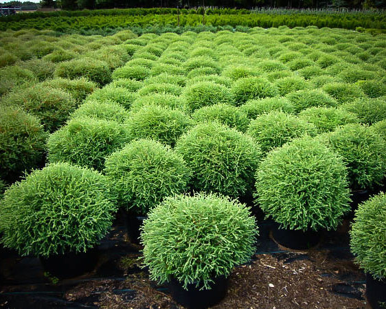 Саженцы туи западной Мр Боулинг Болл (Mr Bowling Ball) вырастают в восхитительный карликовый кустарник, который может быть высажен в большие контейнерные клумбы. Крона отличается правильной шаровидной кроны и практически не требует формировочной обрезки. Игольчатая хвоя имеет сизо-зеленый оттенок, а в зиму становится практически бронзовой. Крупномеры лучше сажать осенью или ранней весной. Туя западная Мр Боулинг Болл в зрелом возрасте не превышает одного метра в диаметре. Кустарник с успехом используется профессиональными садоводами для озеленения вересковых садов.