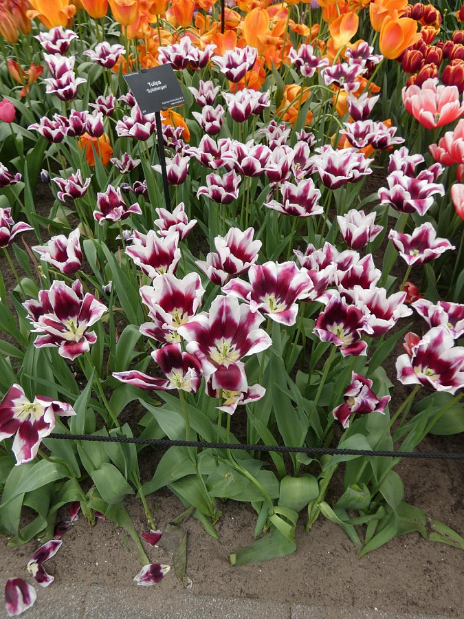Тюльпан Триумф Шпицберген - это великолепное растение с бордовыми цветками, украшенными широким белым краем. Его стебель достигает высоты до 45 см, что делает его идеальным выбором для групповых и одиночных посадок. Листья тюльпана имеют травянистую форму, что придает растению особый шарм.