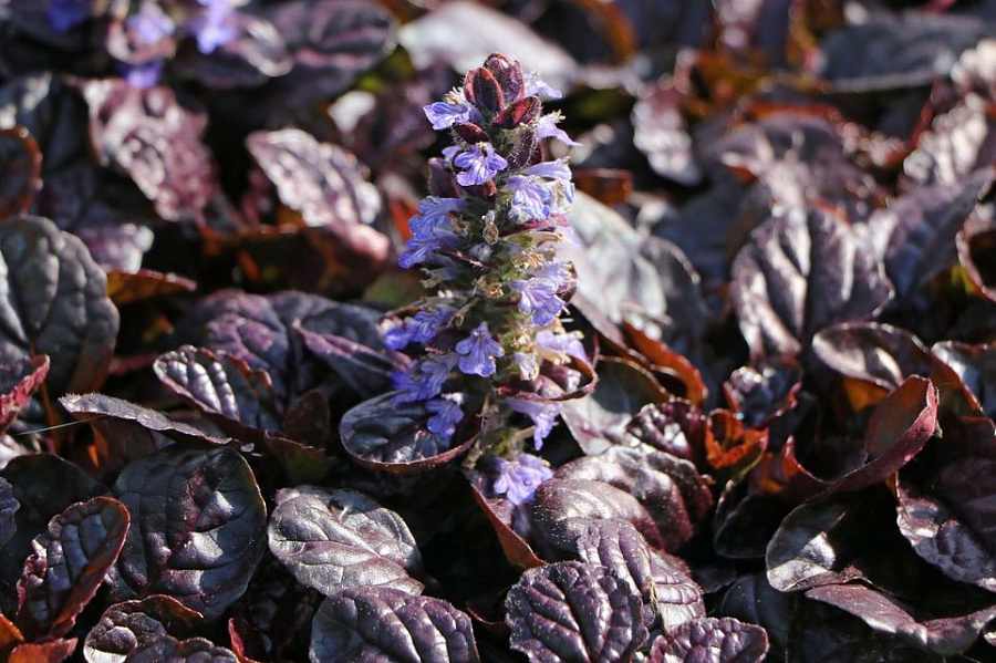 Рассада живучки Атропурпуреа (Atropurpurea) привлекает свое внимание не только красивым цветением, но и листвой пурпурного окраса. Вырастает в высоту около 10-15 см. Цветет в мае-июне небольшими цветочками синего цвета. Преимущества живучки Атропурпуреа: